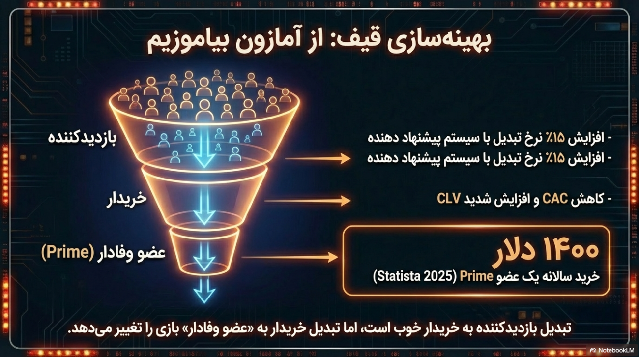 - ارزش طول عمر مشتری (CLV): یه مشتری Prime به طور متوسط سالانه 1400 دلار خرج میکنه (طبق گزارش Statista توی سال 2025).